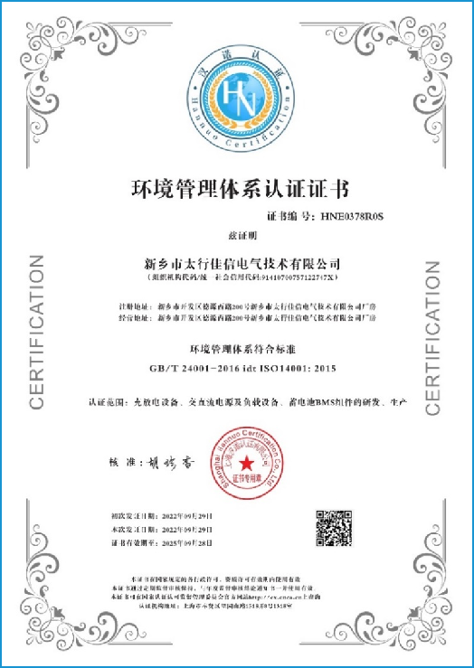 環境管理體系認證證書